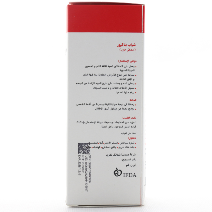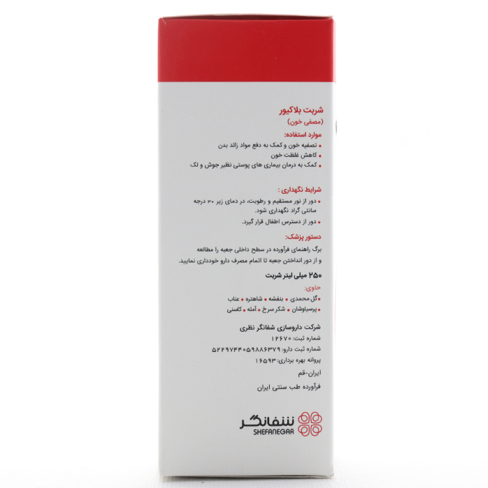 شربت مصفی خون (بلاکیور) یک محصول گیاهی است که برای پاکسازی بدن، بهویژه خون، طراحی شده و از عصاره شاهتره و عسل تهیه میشود. این شربت بهدلیل خواص آنتیباکتریال و ضدقارچی شاهتره، بدون استفاده از مواد نگهدارنده تولید شده است و میتواند سموم و مواد زائد را از بدن دفع کند. مصرف این شربت به تعادل بدن کمک کرده و از انباشت مواد مضر جلوگیری میکند. یکی از ویژگیهای برجسته شربت مصفای خون، تأثیر آن در تنظیم اخلاط ثلاثه (صفرا، سودا و بلغم) است که در نتیجه سبک زندگی ناسالم و تغذیه نامناسب افزایش مییابند و مزاج خون را از حالت اعتدال خارج میکنند. این شربت با حذف رسوبات و اخلاط اضافی از خون، وضعیت سلولهای بدن را بهبود میبخشد و اثرات مثبت آن در درمان مشکلات پوستی مانند جوش، لکهای پوستی و خارش قابل مشاهده است. مصرف منظم شربت مصفی خون باعث تغذیه بهتر پوست با خون سالم شده و بسیاری از مشکلات پوستی را برطرف میکند.