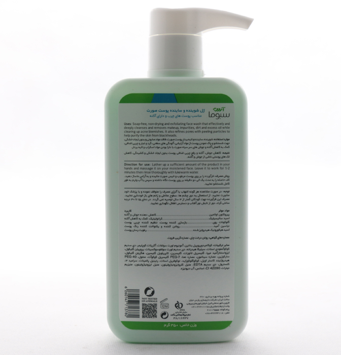 - ژل شوینده، ساینده صورت سبوژل، برای کمک به کاهش آکنه و جوش های سر سیاه صورت