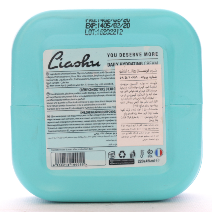 - کرم آبرسان روزانه لیاشو، حاوی عصاره آلوئه ورا ، کلاژن و ویتامین B3