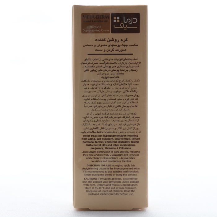 - کرم روشن کننده ملا درم درماسیف کاهش دهنده شدت و اندازه لکه های تیره پوست صورت، گردن و دست