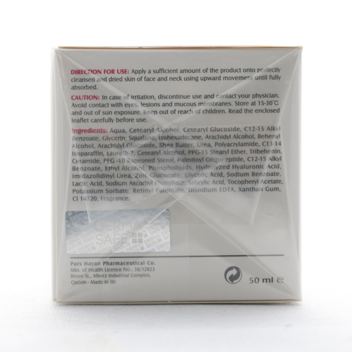 شی باتر: رطوبت رسانی به پوست را افزایش داده، شادابی و طراوت آن را برایتان به ارمغان آورده، از تحلیل رفتن پوست پیشگیری و موجب شادابی و طراوت آن می شود. به علاوه شی باتر با نفوذ پذیری عمیق به درون پوست از بروز خطوط ریز و درشت در بافت آن جلوگیری می کند. هیالورونیک اسید: موجب آبرسانی فوق العاده به بافت پوست شده، چین و چروک های ریز و درشت را برطرف کرده پوستی شاداب با طراوت بالایی را برایتان به ارمغان می آورد. سایر ترکیب ها: اسید گلیکولیک، اسید لاکتیک، گلیسیرین، سالیسیلیک اسید، سدیم هیالورونات، پتاسیم سوربات و اوره.