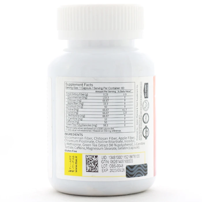 فیبر پسیلیوم، فیبر گلوکومانان،فیبر کیتوزان، فیبر سیب، پیکولینات کروم، بی تارتارات کولین، اینوزیتول، ال-متیونین، عصاره چای سبز، ال-کارنیتین، کافئین، اسنئارات منیزیم، ژلاتین (کپسول)