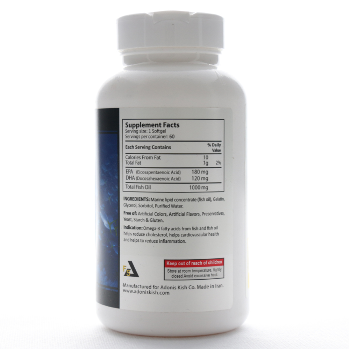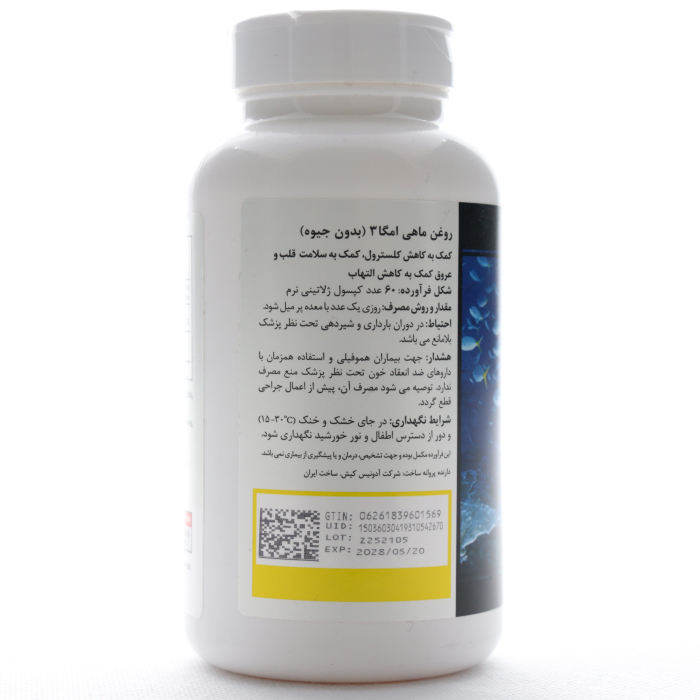 این محصول کپسولهای روغن ماهی امگا ۳ فرمولیتد ساینس است که حاوی اسیدهای چرب امگا ۳ هستند.