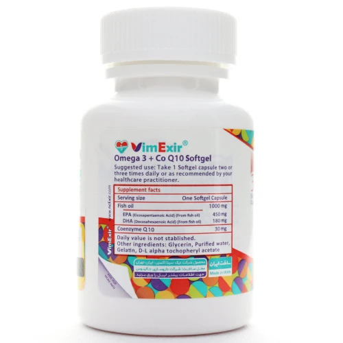 - کپسول امگا3 و کیوتن ویمکسیر، حاوی ۴۵۰ میلیگرم EPA و ۱۸۰ میلیگرم DHA