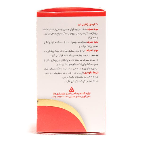 کپسول جینسینگ100میلی گرم دانا در افزایش توانایی جسمی و ارتقا حافظه یادگیری و جلوگیری از پیری زودرس اندام های بدن و بهبود عملکرد غدد درون ریز نقش فوق العاده ایفا میکند.