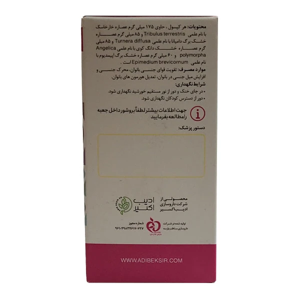 • حاوی عصاره خارخاسک، عصاره خشک دامیانا و عصاره خشک دانگ کویی