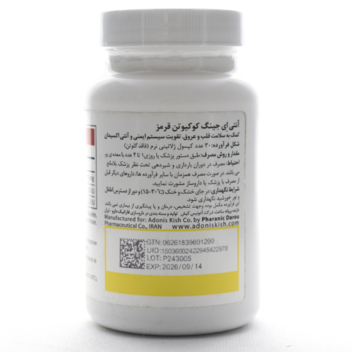 آنتی ای جینگ کوکیوتن قرمز، مکملی تغذیهای است که با ترکیب 30 میلیگرم کوآنزیم Q10، 30 واحد ویتامین E و 2.3 واحد ویتامین A در هر کپسول، به حفظ سلامت سیستم قلبی عروقی کمک میکند. این کپسول همچنین با اثرات آنتیاکسیدانی خود از سلامت پوست حمایت کرده و در تقویت باروری در بانوان و بهبود سلامت اسپرم موثر است. علاوه بر این، مصرف رد کیوتن آنتی ایجینگ موجب تقویت سیستم ایمنی بدن میشود و فاقد گلوتن، شکر، مخمر و گندم است.قرص کوکیوتن قرمز برای چیه