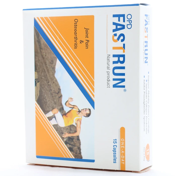 کپسول فست ران او پی دی فارما، از طریق مهار تعدادی از مولکولها و مسیرهای مرتبط با بیماری استئوآرتریت، از تخریب غضروف جلوگیری میکند و باعث بهبود عملکرد مفاصل میشود. این مکمل غذایی حاوی عصاره آووکادو و سویا میباشد. فست ران (Fastrun) همچنین میتواند به بهبود عملکرد مفاصل و کاهش درد ناشی از فعالیت بدنی کمک کند.