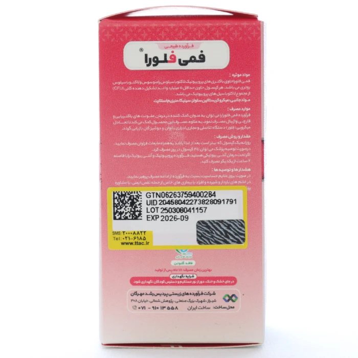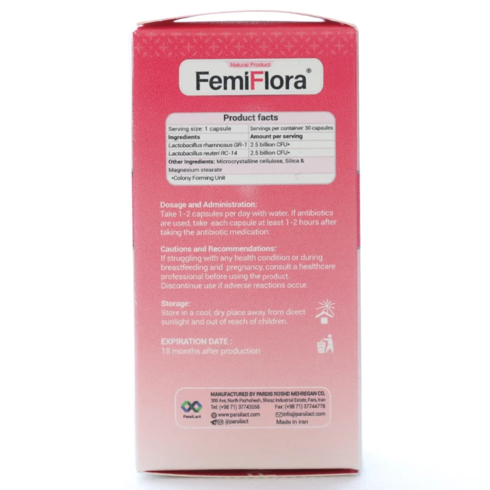 - کپسول فمی فلورا مفید برای تقویت ایمنی ناحیه تناسلی پس از مصرف آنتیبیوتیک یا در دورههای حساس