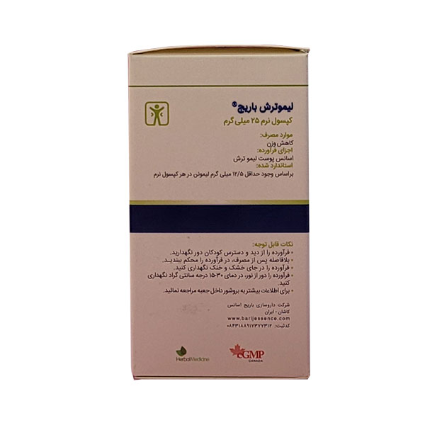 کپسول لیموترش 25 میلی گرم باریج اسانس 60 عددی