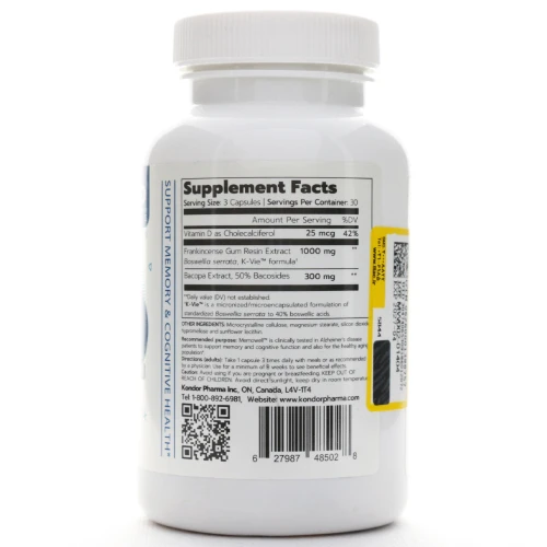 کپسول مموری هلث مموول، یک فرآورده تخصصی برای تقویت حافظه و بهبود عملکرد شناختی است که تحت لیسانس کمپانی Kondor Pharma کانادا و توسط شرکت بهبالین در ایران تولید میشود. این محصول حاوی ترکیبات بیولوژیکی فعالی مانند ویتامین D3، عصاره صمغ کندر با فرمولاسیون اختصاصی ™K-Vie و گیاه باکوپا است. ترکیب این مواد موجب حفظ سلامت مغز، پشتیبانی از عملکردهای شناختی و کمک به کاهش علائم ناشی از اختلالاتی نظیر آلزایمر میشود.
