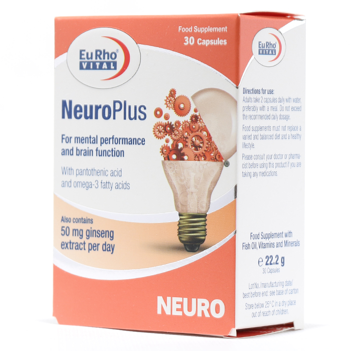 – کپسول نورو پلاس یوروویتال حاوی مخلوطی از عصاره جینسینگ، امگا ۳، ویتامینها، و مواد معدنی است که به بهبود عملکرد مغزی، تقویت ذهن، و افزایش توانایی شناختی کمک میکند. این کپسول همچنین تاثیر مثبتی در تقویت حافظه، افزایش تمرکز، تسهیل یادگیری، کاهش اضطراب و خستگی دارد.