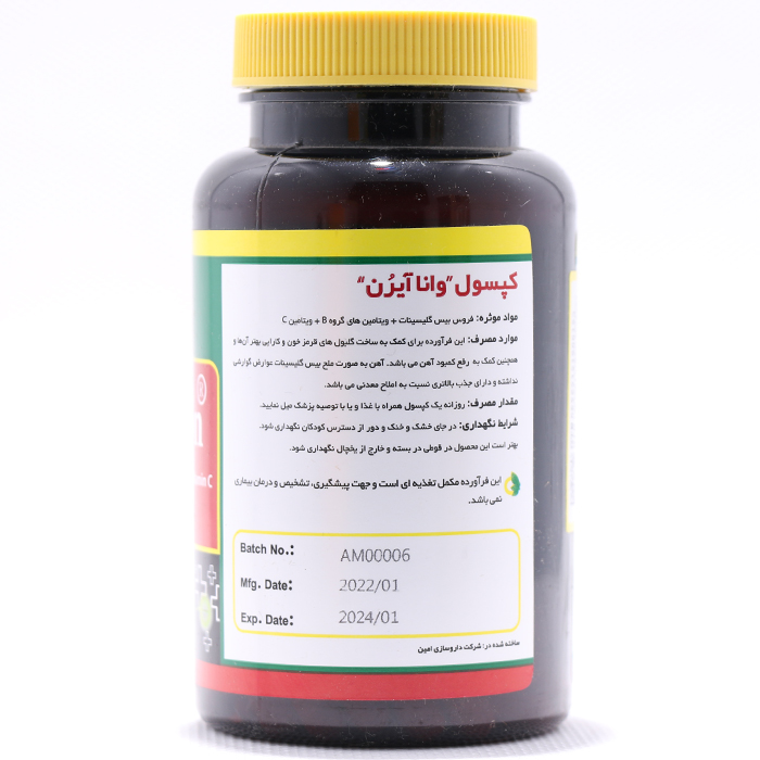 کپسول وانا آیرون صرفا مکمل رژیمی – غذایی بوده و جهت تشخیص، پیشگیری و یا درمان بیماری نیست.