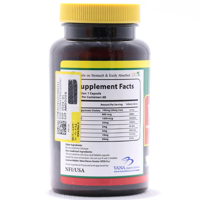 معرفی کپسول وانا آیرون نورم لایف 60 عددی