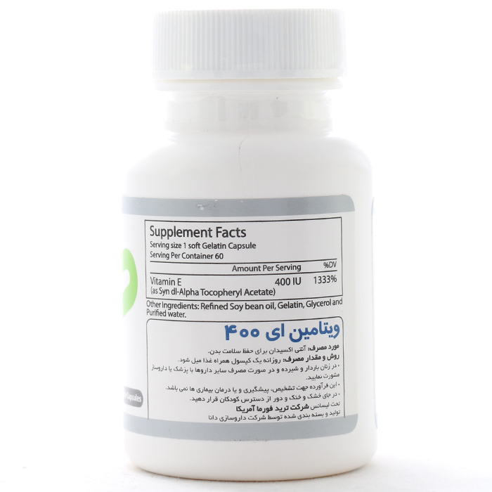 - کپسول ویتامین ای 400 ترید فورما حاوی 400 واحد بینالمللی ویتامین E در هر سافتژل
