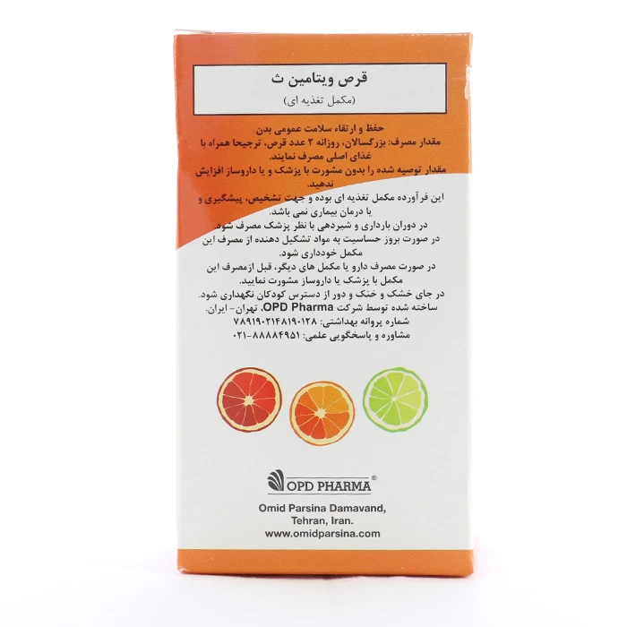 - ویتامین سی opd pharma حاوی 500 میلی گرم ویتامین C در هر قرص