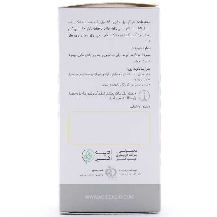 کپسول ویل نایت ادیب اکسیر از عصارههای گیاهی مانند ریشه سنبل الطیب و عصاره برگ فرنجمشک (بادرنجویه) برای بهبود اختلالات خواب استفاده میکند. این مکمل همچنین میتواند برای درمان افسردگی ناشی از کمبود ملاتونین مفید باشد.