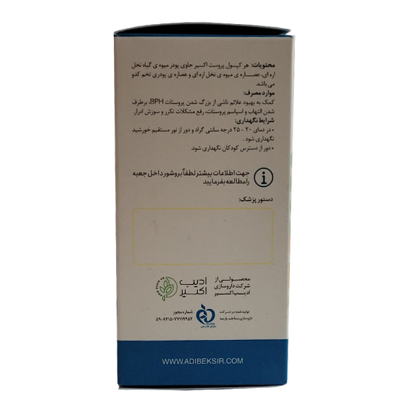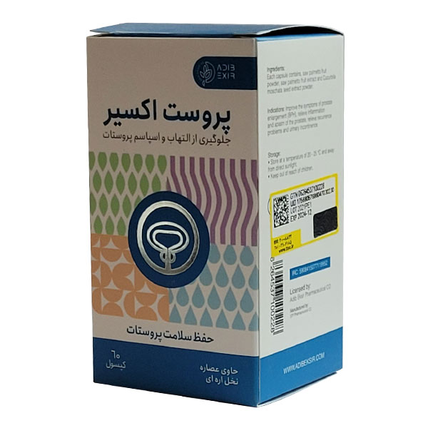 پروست اکسیر ادیب اکسیر ، حاوی مواد گیاهی است که می‌تواند بهبود علائم ناشی از تورم پروستات (BPH) را تسریع کرده، التهاب و اسپاسم پروستات را کاهش داده و مشکلات مربوط به تکرار و سوزش ادرار را رفع نماید. همچنین، مصرف این کپسول می‌تواند به حفظ سلامت پروستات کمک کند.