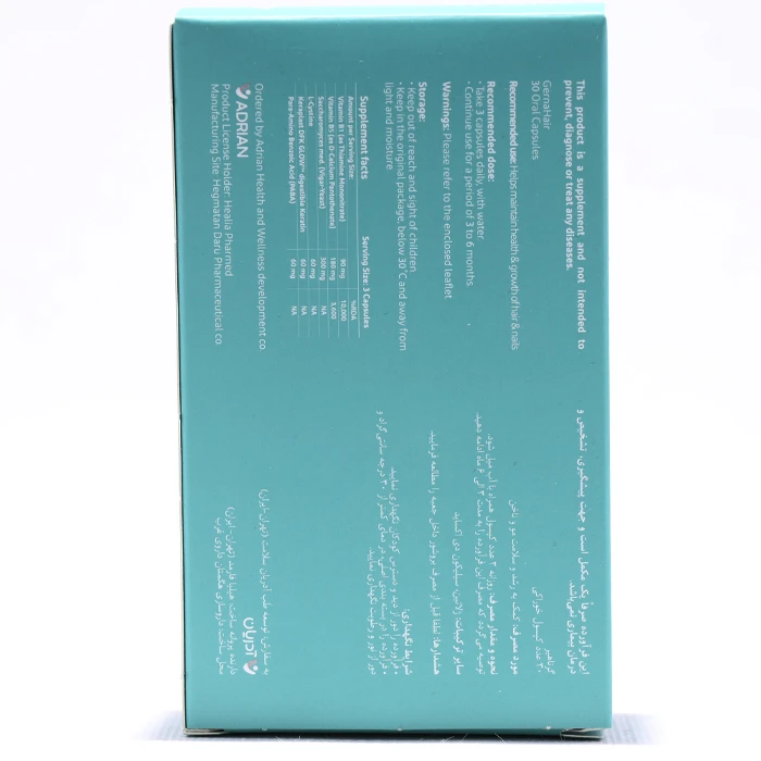 کپسول گرناهیر پریمیوم آدریان، یک محصول ارزشمند برای بهبود و نگهداری سلامتی مو و ناخن محسوب میشود. اما به طور خاص، کپسول گرناهیر پریمیوم آدریان غذایی برای مدیریت مشکلات مرتبط با ریزش مو توصیه میشود. در صورتی که با مشکل ریزش مو مواجه هستید، ممکن است تهیه و مصرف قرص ضد ریزش را در نظر بگیرید.