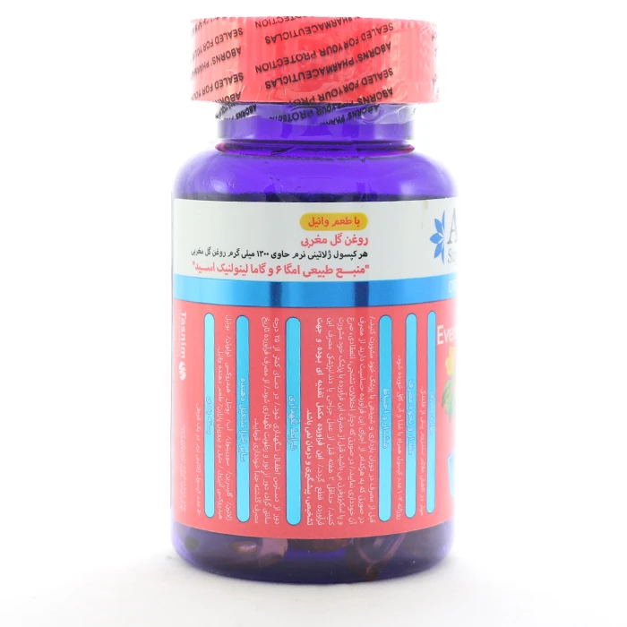 – هر کپسول این مکمل گیاهی شامل ۱۳۰۰ میلیگرم روغن گل مغربی است.