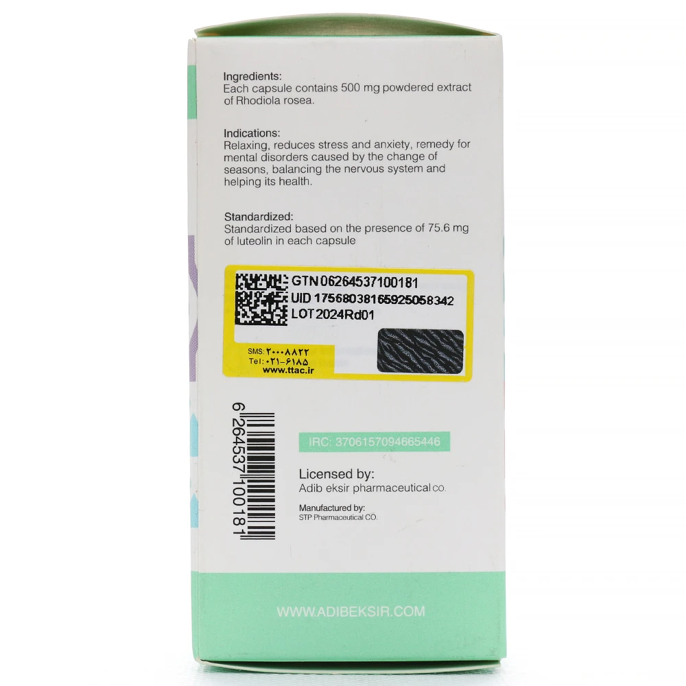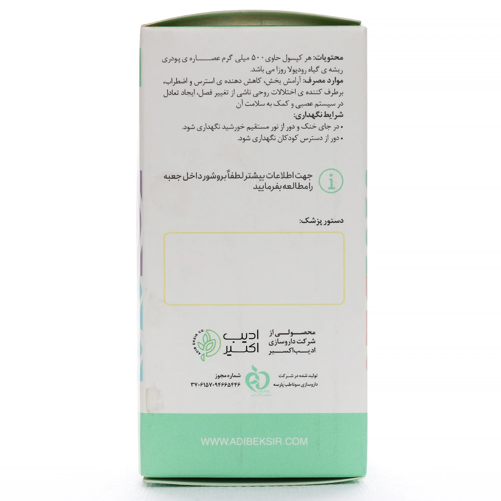 کپسول رودیلاکس ادیب اکسیر مکمل گیاهی است که میتواند در سیستم عصبی تعادل ایجاد نموده و به عنوان یک آرامش بخش موثر، کاهش دهنده استرس و اضطراب و اختلالات روحی ناشی از تغییر فصل است.