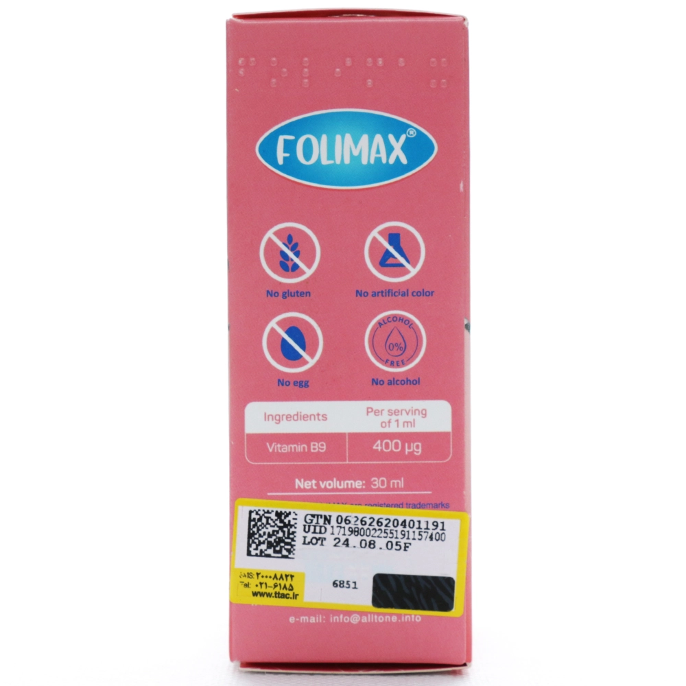 - حاوی فولیک اسید (ویتامین B9) 400 میکروگرم در هر میلیلیتر