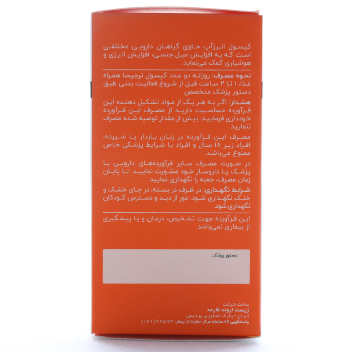 ترکیبات گیاهی موجود در این محصول نیز با تقویت قوای جسمانی، تنظیم هورمونها و افزایش مقاومت بدن، اثرات مکملی ایجاد میکنند. مصرف این محصول به افرادی که به دنبال حفظ انرژی، تقویت قوای جنسی و بهبود سلامت عمومی هستند، توصیه میشود.