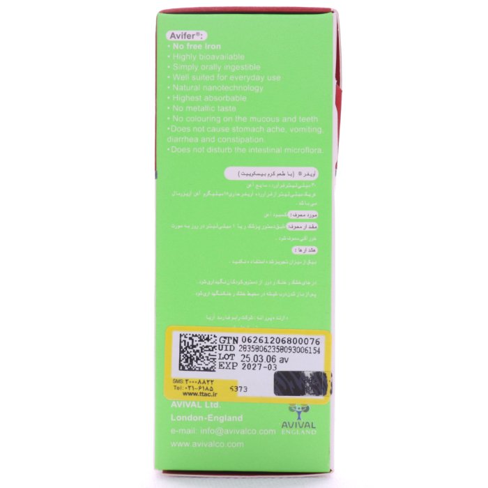 قطره آهن آویفر آویوال با طعم دلپذیر کرم بیسکوییت، یک مکمل غذایی مناسب برای نوزادان و کودکان است که در هر میلی لیتر خود، ۱۵ میلی گرم آهن آویزومال فراهم میکند. این نوع آهن به دلیل ساختار خاص خود، جذب بالایی در بدن دارد و به طور مؤثری در تأمین نیاز روزانه آهن، پیشگیری از کمخونی ناشی از فقر آهن و تقویت رشد جسمی و ذهنی کودک نقش دارد. فرمولاسیون ویژه آویفر باعث شده تا این فرآورده عوارض گوارشی شایع مکملهای آهن مانند دل درد، یبوست، اسهال، تهوع و استفراغ را به حداقل برساند و در عین حال، بدون تغییر رنگ دندان یا لثه و ایجاد طعم فلزی در دهان مصرف شود. نحوه مصرف قطره آویفر طبق دستور پزشک مشخص میشود، اما معمولاً مقدار توصیه شده برای کودکان، روزانه ۱ میلی لیتر به صورت خوراکی است. برای بهترین جذب، توصیه میشود قطره در فواصل بین وعدههای غذایی و با مشورت پزشک استفاده شود.فواید آویفر آویوال