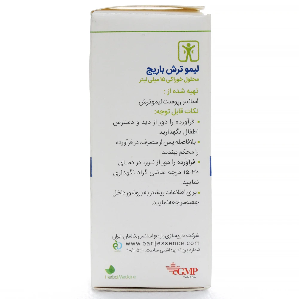 قطره لیموترش باریج، محصولی حاوی عصاره پوست لیموترش، به عنوان ماده مؤثره به چربی سوزی، کاهش وزن و تثبیت آن کمک میکند.