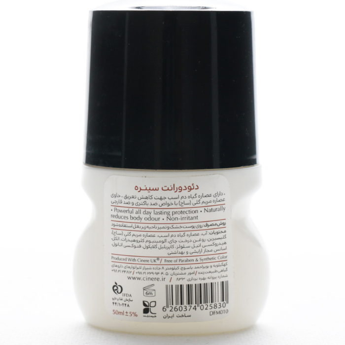 رول زیر بغل مردانه سینره FLAME، برای هر آقایی که به دنبال یک محصول با کیفیت و موثر برای مراقبت از بدن خود هستند، مناسب است. این محصول برای همه انواع پوست، از جمله پوست حساس نیز مناسب است. برای مشاهده و خرید سایر محصولات برند سینره لطفا از اینجا وارد شوید. هنگامی که فعالیت های ورزشی یا روزانه انجام می دهید و یا در محیط و هوای گرم قرار می گیرید، بدن شما به تدریج گرم شده و با عرق کردن این گرما را کاهش می دهد. استفاده از رول ضد تعریق مردانه سینره فلیم، از تبدیل عرق به بوی بد روی بدن و لباس جلوگیری می کنند. دئودورانت سینره با بهره گیری از هر دو مکانیزم آنتی باکتریال و ضد عرق عمل می نماید. در فرمولاسیون دئودورانت گیاهانی مثل روغن درخت چای و عصاره مریم گلی با خاصیت آنتی باکتریال استفاده شده است تا از رشد میکروارگانیسم ها در محل جلوگیری کرده و از تجزیه عرق توسط این باکتری ها ممانعت به عمل آورد. از سوی دیگر وجود عصاره گیاه دم اسب با دارا بودن خاصیت قابض باعث شده است تا از میزان ترشح عرق کاسته شده و کارایی محصول افزایش یابد. ترکیبات قابض این گیاه قادرند با پروتئین ها ترکیب شوند و رسوب ایجاد نمایند. این رسوب بر روی مجاری عرق نشسته آنها را تنگ تر کرده و از ترشح عرق جلوگیری می نماید. وجود مواد مرطوب کننده در عصاره دم اسب باعث حفظ رطوبت و الاستیسیته پوست می گردد. این فرآورده به صورت roll-on عرضه شده و استفاده از آن بر روی پوست به راحتی انجام می گیرد و بعد از مصرف سریعا خشک شده و از خود شوره باقی نمی گذارد. در حالت عادی اثر ضد عرق این فرآورده تا 72 ساعت باقی می ماند. در این دئودورانت از اسانسی گرم و سنگین استفاده شده است و رایحه آن تمام روز همراه شما خواهد بود. مام دئودورانت سینره مدل Flame بدون تست حیوانی تولید شده با ترکیبات گیاهی ارزشمند و فناوری مدرن خود، یک راه حل موثر و امن برای مراقبت از بدن شماست. با استفاده منظم از این محصول، میتوانید از ترشحات ناخواسته عرق و بوی نامطبوع بدن جلوگیری کرده و احساس آرامش و اعتماد به نفس بیشتری داشته باشید. پس از تجربه این محصول، مطمئناً به عنوان یکی از محصولات اصلی مراقبت از بدن خود را انتخاب خواهید کرد.ویژگی های رول زیر بغل مردانه سینره FLAME