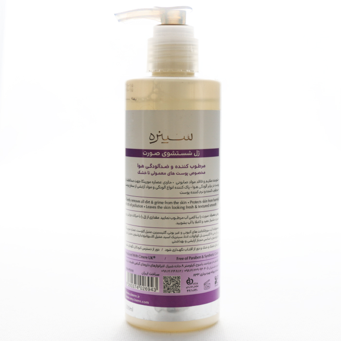 ژل شستشوی صورت پوست خشک و معمولی سینره، با خاصیت مرطوب کنندگی و ضد آلودگی هوا، با بهره گیری از فرمولاسیونی بسیار ملایم، مواد مرطوب کننده فوق العاده مؤثر و pH مناسب این امکان را فراهم می آورد که افرادی با پوست خشک هم بتوانند بدون هیچگونه نگرانی از تشدید خشکی پوستشان، صورت خود را به راحتی شستشو دهند و پوستی پاکیزه و با طراوت و چهره ای درخشان، شاداب و آراسته داشته باشند. برای مشاهده و خرید سایر محصولات برند سینره لطفا از اینجا وارد شوید. در جوامع امروزی، آلودگی هوا بیداد میکند و طبیعی است که به خصوص اگر در محیط خارج از منزل فعالیت دارید، آلودگیها روی پوست شما بنشینند و شما را دچار مشکلات پوستی نمایند. برای پاک کردن این آلودگیها از سطح پوست، قطعا به یک شوینده مناسب نیاز دارید. اگر نوع پوست شما معمولی یا خشک است، ژل شستشوی صورت سینره مناسب شماست. در این ژل شستشوی صورت مناسب پوست خشک، از عصاره مورینگا نیز استفاده شده که از پوست شما در برابر آلودگیها محافظت میکند. عصاره مورینگا موجود در این فرآورده یک لایه محافظ طبیعی بر روی پوست ایجاد کرده و از جذب آلودگی ها به پوست جلوگیری می کند بدون اینکه آثار تحریکی بر روی پوست برجا گذارد. این ژل حاوی مواد نرم کننده و مرطوب کننده طبیعی می باشد که باعث نرم شدن پوست و حفظ رطوبت آن بعد از شستشو می شود. ژل شستشوی صورت سینره پوست معمولی تا خشک فاقد پارابن و رنگ مصنوعی است.ویژگی های ژل شستشوی صورت پوست خشک و معمولی سینره