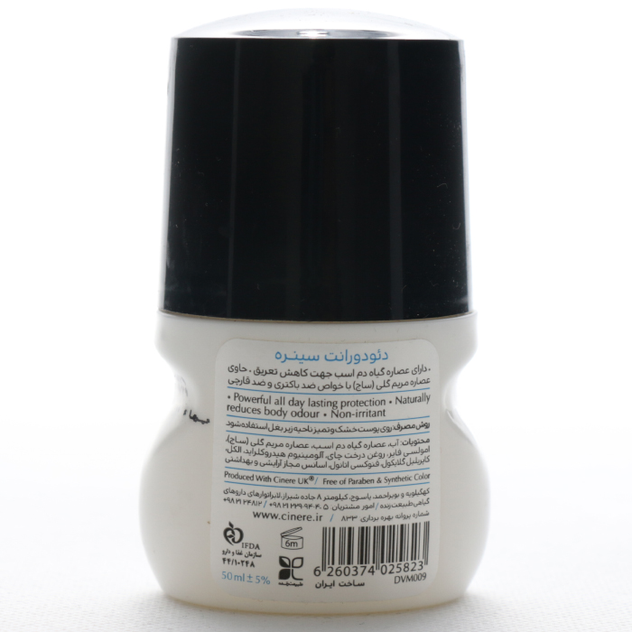 - زیر بغل مردانه سینره vivacity، حاوی عصاره مریم گلی (ساج) با خواص ضد باکتری و ضد قارچی