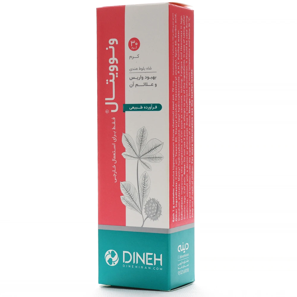 کرم ونوویتال دینه، یک فرآورده پوستی با تکیه بر عصاره دانه شاه بلوط هندی است که جهت کاهش احساس سنگینی، خستگی و ناراحتی پاها پس از ایستادن یا نشستن طولانیمدت استفاده میشود. بسیاری از افراد هنگام کار روزانه، سفرهای طولانی، فعالیتهای ایستاده، ورزشهای سنگین یا حتی در هوای گرم دچار حس کشش، ورم خفیف یا خستگی اندام تحتانی میشوند. پمادهای تقویتکننده گردش وریدی پا مانند ونوویتال با ماساژ موضعی میتوانند به بهبود احساس راحتی کمک کنند. کرم ونوویتال دینه در درمان واریسهای سطحی و بهبود واریس پیشرفته، ورم و احساس سنگینی در پا و درد در عضلات ساق پا نقش بسزایی دارد.