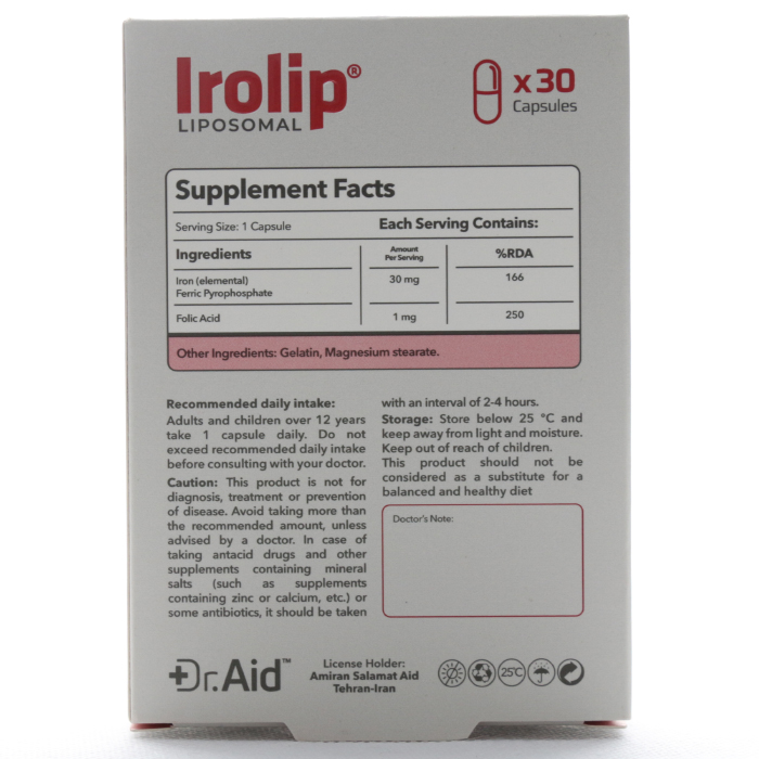 کپسول آیرولیپ لیپوزومال مفید برای تأمین نیاز روزانه بدن به آهن و فولیک اسید