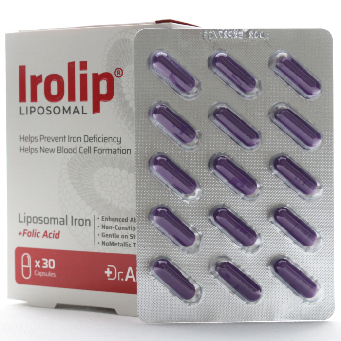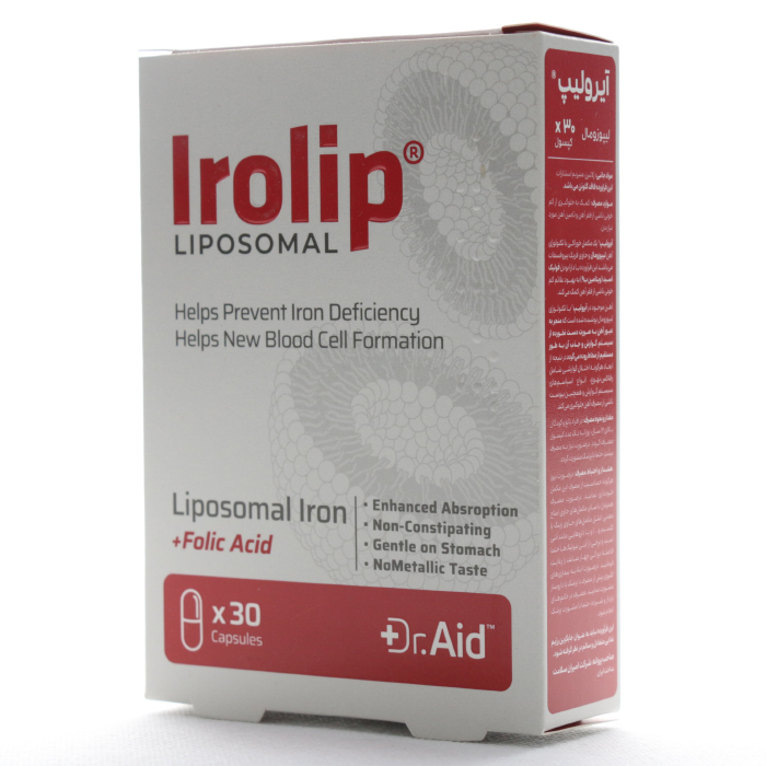 کپسول آیرولیپ لیپوزومال، مکملی فاقد گلوتن و غنی از فریک پیروفسفات و فولیک اسید (ویتامین B9) است که با بهرهگیری از تکنولوژی لیپوزومال، به جذب مؤثر آهن از طریق مخاط روده بدون ایجاد عوارض گوارشی مانند تهوع، رفلاکس یا یبوست کمک میکند. این فرآورده با تأمین آهن مورد نیاز بدن، نقش مؤثری در پیشگیری و بهبود کم خونی ناشی از فقر آهن دارد.کپسول آیرولیپ لیپوزومال برای چیست