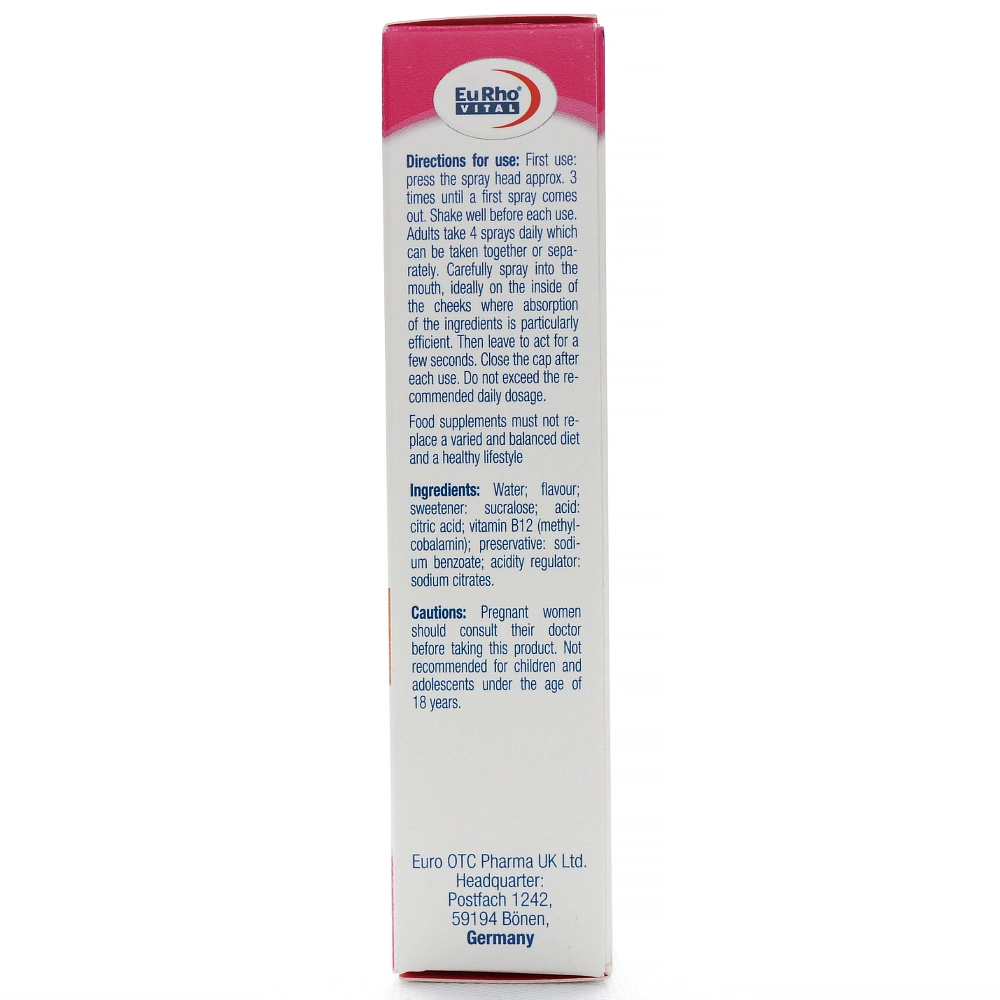 اسپری ویتامین ب۱۲ یوروویتال، به شکل اسپری دهانی طراحی شده است که در هر 4 پاف به دلیل وجود 1200 میکروگرم ویتامین ب۱۲ با فرم متیل کوبالامین (که فرم فعال ویتامین ب۱۲ است) می تواند مقادیر بسیار مناسبی از این ویتامین را برای بدن تامین کند. قدرت جذب دهانی این اسپری بسیار بیشتر از نمونه های کپسول یا قرص ویتامین ب۱۲ است که سیستم گوارشی بدن را درگیر نکرده و به راحتی جذب می شود. همچنین طعم نعنا نیز به ترکیبات اسپری دهانی ویتامین ب۱۲ یوروویتال اضافه شده است تا طعم دلنشینی را نیز هنگام مصرف آن احساس کنید.