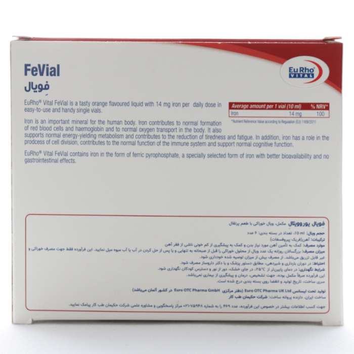 ویال فویال یوروویتال یک مکمل خوراکی خوش طعم با طعم پرتقال است که برای پیشگیری و کمک به درمان کم خونی ناشی از فقر آهن طراحی شده است. این محصول حاوی ۱۴ میلی گرم آهن پیروفسفات با قابلیت جذب بالا بوده و گزینهای مناسب برای افرادی است که به دنبال تأمین مؤثر آهن مورد نیاز بدن خود بدون عوارض گوارشی هستند. استفاده از این ویال به طور منظم میتواند در افزایش سطح انرژی، کاهش احساس خستگی و بهبود تمرکز مؤثر باشد.