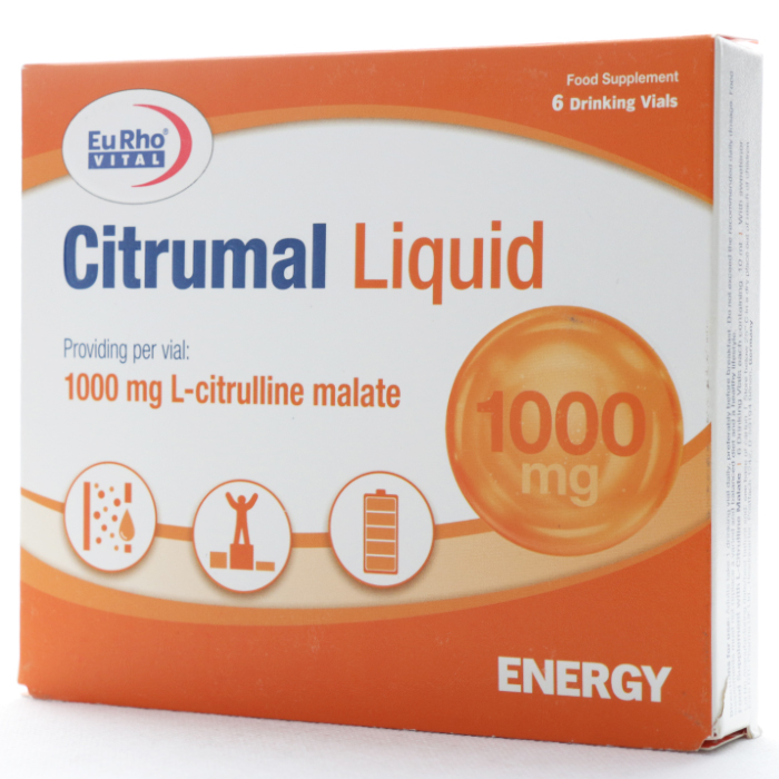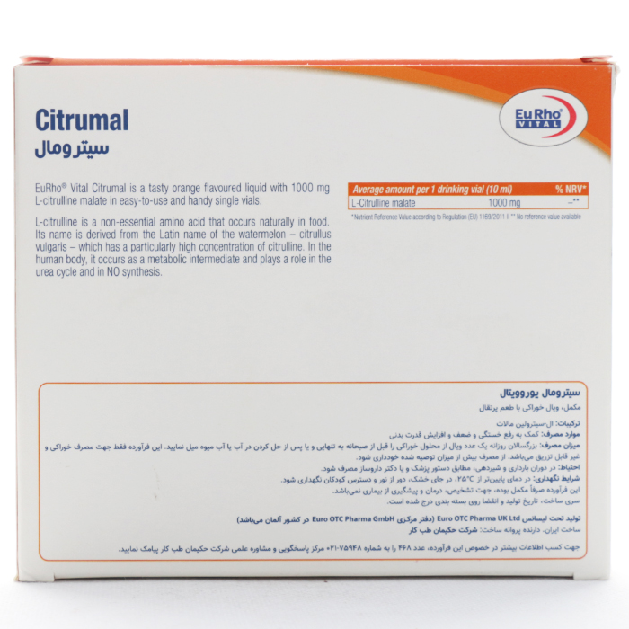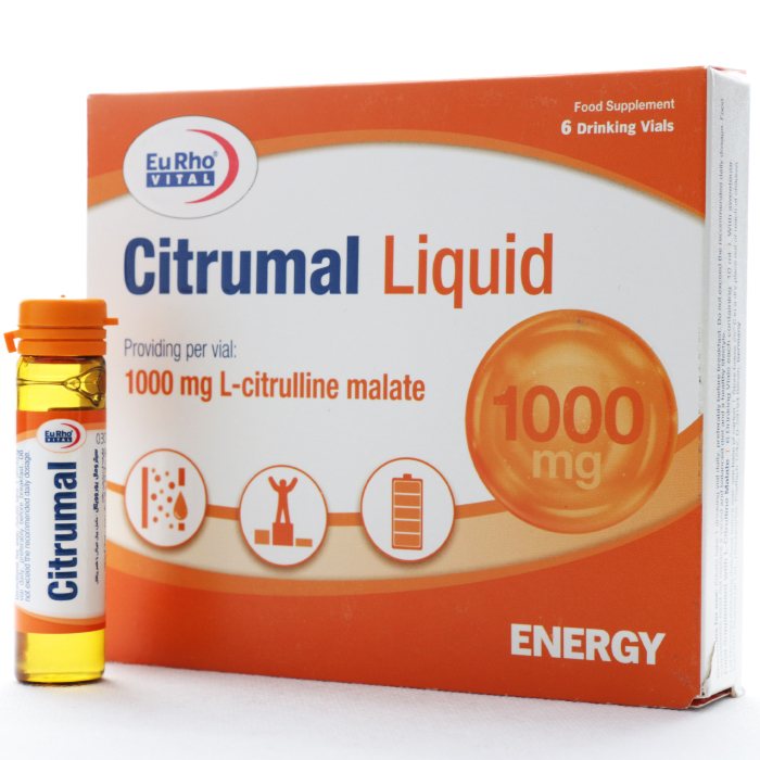 - ویال خوراکی سیترومال یوروویتال، حاوی 1000 میلی گرم ال سیترولین مالات در هر ویال