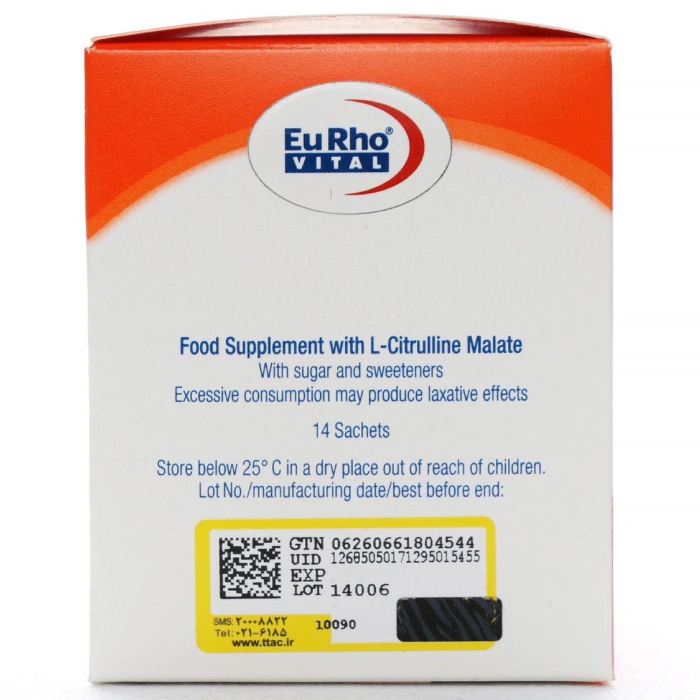 ساشه سیترومال یوروویتال، به منظور تقویت عملکرد بدن و بهبود سلامت عمومی طراحی شده است. هر ساشه از این محصول حاوی 1000 میلیگرم ال-سیترولین مالات است که به گشاد شدن عروق خونی و بهبود جریان خون کمک میکند که این امر، فواید گستردهای برای ورزشکاران و افراد عادی به همراه دارد.