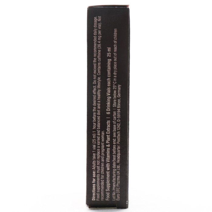تنها یک ویال (25 میلیلیتر) در روز مصرف شود و از مصرف بیش از حد توصیهشده اکیداً خودداری گردد، چرا که مصرف بیش از حد کافئین یا جینسینگ ممکن است موجب تپش قلب، بیخوابی، اضطراب یا اختلالات گوارشی شود.