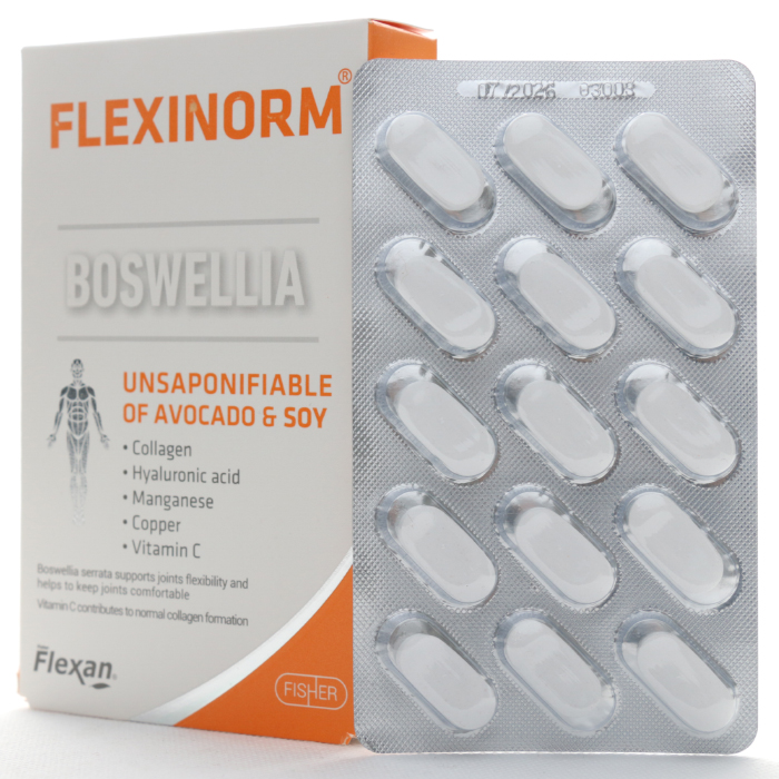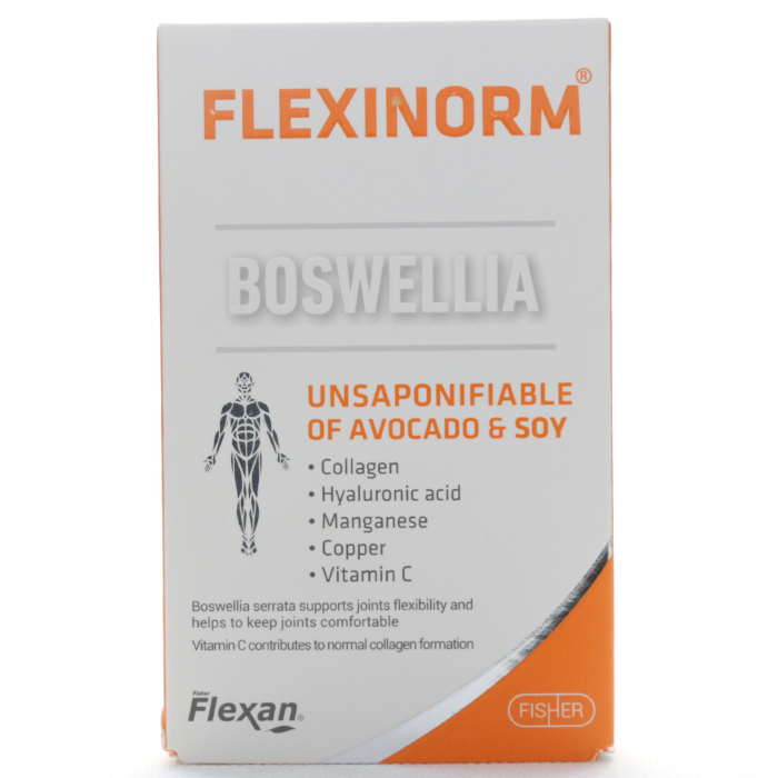 فلکسی نورم فرآوردهای تخصصی جهت کمک به کاهش تورم، التهاب و درد مفاصل، بهبود حرکت، افزایش انعطافپذیری، بهبود عملکرد مفاصل و جلوگیری از تخریب آنها با افزایش سن کمک می کند. قرص فلکسی نورم فیشر فلکسان مکملی مناسب جهت حفظ سلامت استخوانها و مفاصل است که وجود عصارههای گیاهی مانند سویا و آووکادو در آن از تجزیه غضروفها جلوگیری کرده و باعث کاهش درد مفاصل میشود. برای صحبت در مورد اثرات قرص فلکسی نورم فلکسان، ترکیبات این فرآورده و اثرات آنها را مورد بررسی قرار میدهیم: کندر کندر درخت بومی هند، آفریقا و شبه جزیره عربستان است که معمولا در طب آیورودا کاربرد دارد. کندر حاوی ترکیبات شیمیایی است که میتوانند با سرکوب تولید لکوترینها، تورم، التهاب و درد را در شرایط استئوآرتریت کاهش داده و منجر به بهبود حرکت شوند. استفاده از عصاره کندر میتواند به افزایش انعطافپذیری مفاصل و جلوگیری از تحلیل غضروفها کمک کند. کلاژن کلاژن یکی از پروتئینهای مهم برای ساخت بافت همبند غضروف، استخوان، مفاصل، عضلات، تاندونها، لیگامانها و پوست است. این پروتئین بهطور طبیعی در بدن از اسیدهای آمینه ساخته میشود و یک سوم پروتئینهای بدن را تشکیل میدهد. با افزایش سن، شکست کلاژن در بدن افزایش و تولید آن کاهش پیدا میکند. این شرایط بهخصوص در سنین یائسگی ایجاد میشود. کلاژن 8 اسید آمینه از 9 اسید آمینه ضروری مورد نیاز بدن برای ساخت پروتئینها را دارد و بهدلیل اینکه بسیاری از اجزای حیاتی بدن را تشکیل میدهد، جهت حفظ سلامت بدن نه تنها مفید، بلکه ضروری است. با افزایش سن و کاهش تولید کلاژن، علائمی مانند درد مفاصل یا سفتی تاندونها و لیگامانها بروز پیدا میکند. مصرف کلاژن به حفظ سلامت مفاصل و ساخت غضروف کمک کرده و به تسکین درد و بهبود عملکرد مفصل کمک میکند. همچنین در افراد مبتلا به استئوآرتریت استفاده از مکمل کلاژن در کاهش درد مفاصل موثر است. 3 الی 5 ماه مصرف مداوم و روزانه کلاژن برای مشاهده این اثرات لازم است. عصاره آووکادو-سویا عصاره غیر صابونی شونده آووکادو-سویا از مخلوط کردن یک سوم روغن آووکادو با دو سوم روغن سویا بهدست میآید. این عصاره حاوی ترکیباتی مانند ویتامین E، چربیهای گیاهی و ... است. بهنظر میرسد مخلوط این مواد شیمیایی التهاب و تورم مفاصل و سایر نقاط بدن را کاهش میدهد. معمولا از آووکادو-سویا جهت بهبود استئوآرتریت استفاده میشود. بهنظر میرسد مصرف خوراکی عصاره غیر صابونی شونده آووکادو-سویا بهصورت کوتاهمدت باعث کاهش درد و بهبود عملکرد مفاصل در افراد مبتلا به استئوآرتریت در لگن یا زانو شود. این ترکیب در صورت استفاده طولانیمدت، میتواند به کاهش سرعت روند تخریب مفاصل کمک کند. هیالورونیک اسید هیالورونیک اسید یا هیالورون مادهای است شفاف که بهطور طبیعی در قسمتهای مختلف بدن از جمله چشمها، پوست، بافت پیوندی و مفاصل یافت میشود. عملکرد اصلی هیالورونیک اسید نگهداری آب در بافت برای حفظ رطوبت و روانی است. هیالورونیک اسید بهعنوان یک لایه نرم کننده و روانکننده در مفاصل و سایر بافتها عمل کرده و به کاهش درد مفاصل و علائم استئوآرتریت مانند درد زانو کمک میکند. ویتامین C ویتامین C یک ویتامین محلول در آب ضروری است به این معنا که در بدن ساخته نمیشود و بایستی روزانه از طریق خوراکی دریافت شود. این آنتیاکسیدان قوی از سلولها در برابر آسیب رادیکالهای آزاد حفاظت کرده و باعث کاهش خطر بیماریهای مزمن و تقویت سیستم ایمنی بدن میشود. استرس اکسیداتیو یکی از عوامل اصلی تخریب غضروفها با افزایش سن است. ویتامین C با اثرات آنتیاکسیدانی و ضد التهابی خود میتواند به حفاظت مفاصل و غضروفها از استرس اکسیداتیو و کاهش درد کمک کند. این ویتامین در سنتز کلاژن دخیل است که غضروفها، تاندونها و لیگامانها را میسازد. مفاصل حاوی مقدار زیادی بافت پیوندی غنی از کلاژن هستند و میتوانند تحت تاثیر کمبود ویتامین C قرار گیرند. ویتامین C همچنین در افتراق کندروژنیک و سنتز ماتریکس خارج سلولی نقش دارد. بنا
