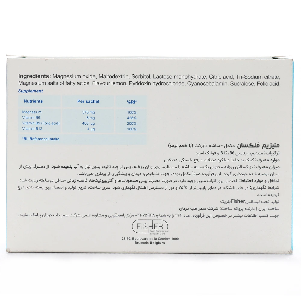 منیزیم فلکسان برند فیشر فلکسان تحت لیسانس کمپانی Fisher کشور بلژیک بوده و با پروانه ساخت شرکت سمرطب درمان در ایران تولید می گردد.
