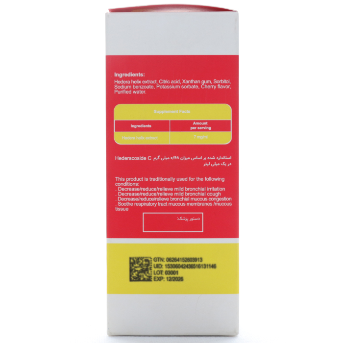 عشقه یا پیچک (Hedera helix)، گیاهی است که برگهای آن غنی از ترکیبات فعالی مانند ساپونینها، فلاونوئیدها و هدراکوزید C است. این ترکیبات، خصوصا ساپونینها، با اثر خلطآور، ضد التهاب و گشادکننده راههای هوایی شناخته شدهاند. مطالعات بالینی متعدد نشان دادهاند که عصاره برگ عشقه میتواند علائم مرتبط با بیماریهای التهابی تنفسی مانند برونشیت، سرفه خشک و خسخس سینه را کاهش دهد، بدون آنکه وابستگی یا خوابآلودگی ایجاد نماید. شربت متکلد با عصاره استاندارد شده عشقه، طعم دلپذیر آلبالویی دارد که مصرف آن را برای کودکان و بزرگسالان سادهتر و خوشایندتر میسازد. این شربت به عنوان یک فرآورده گیاهی موثر، برای بهبود طیف وسیعی از علائم تنفسی طراحی شده است.روش مصرف شربت: