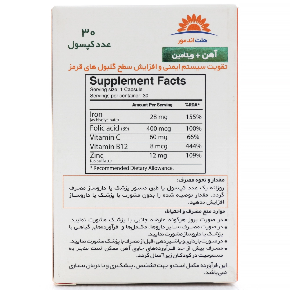 کپسول آیرون پلاس ویتامین سی و ب12 هلث اند مور