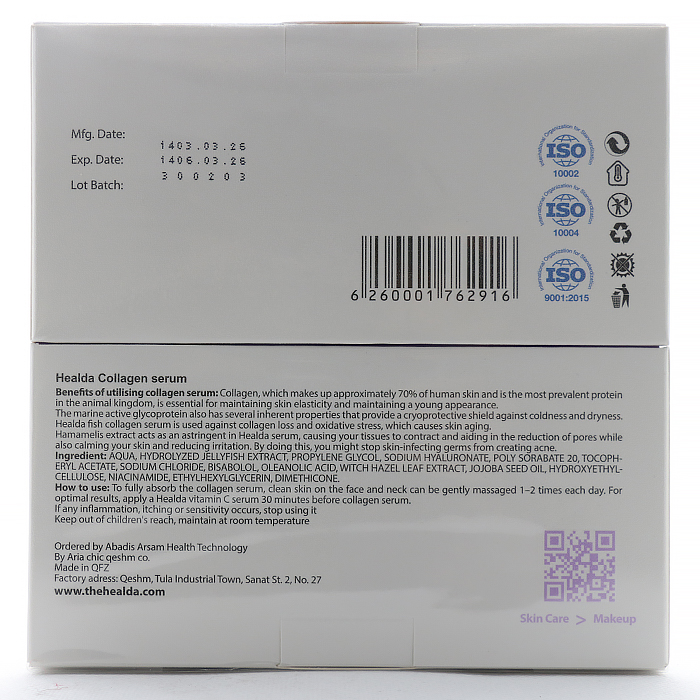 ویتامین C موجود در این سرم، بهعنوان یکی از مؤثرترین ترکیبات مراقبت از پوست، به روشنتر شدن رنگ پوست، یکنواخت شدن تناژ و کاهش کدری پوست کمک میکند و با تحریک فرآیند طبیعی کلاژنسازی، در بهبود بافت و ظاهر کلی پوست مؤثر است. در کنار آن، عصاره خاویار که سرشار از اسیدهای آمینه، ویتامینها و مواد مغذی است، باعث تغذیه عمیق پوست شده و به افزایش نرمی، لطافت و حفظ رطوبت پوست کمک مینماید.