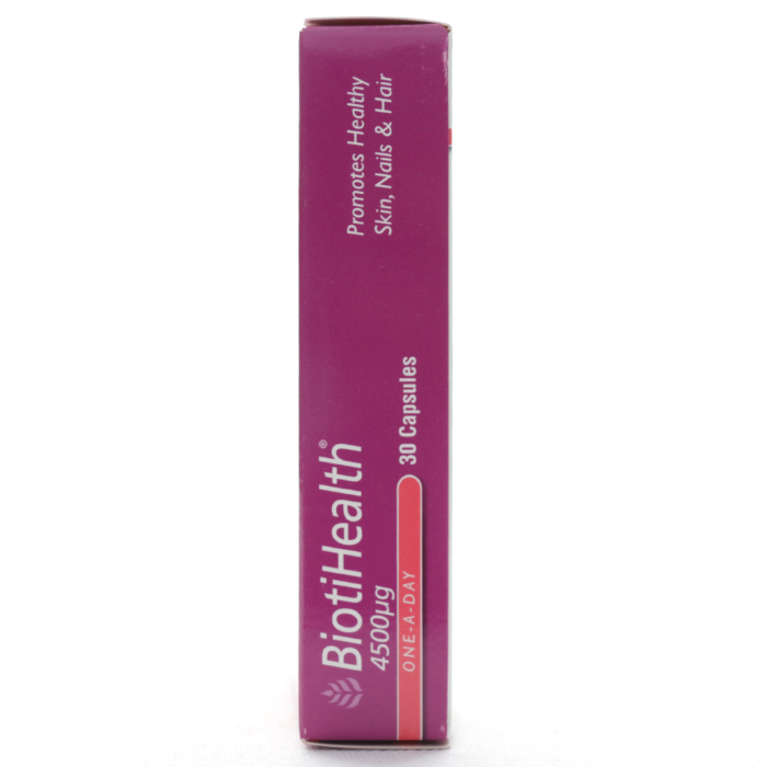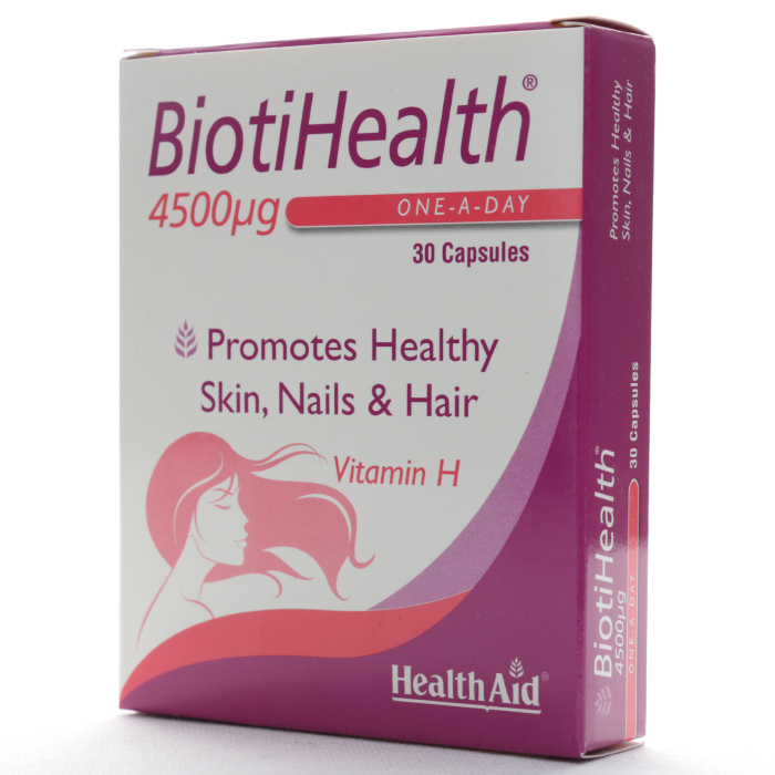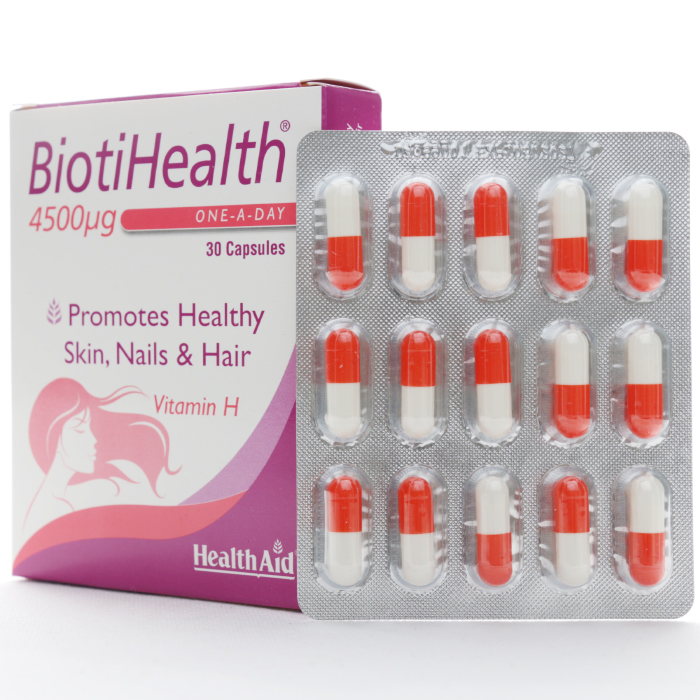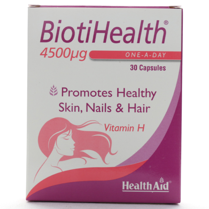 کپسول بیوتی هلث 4500 یک مکمل غذایی حاوی 4500 میکروگرم بیوتین (ویتامین B7) است. این مکمل برای کمک به سلامت پوست، مو و ناخن فرموله شده و به طور موثر کمبود بیوتین را جبران میکند. بیوتین همچنین به عنوان ویتامین H و ویتامین B7 شناخته میشود. بیوتین نقش مهمی در سلامت مو دارد و به همین دلیل ویتامین H نامیده میشود. بیوتین یکی از ویتامینهای گروه B است. به عنوان یک کوآنزیم، به بدن در متابولیسم چربیها، پروتئینها و کربوهیدراتها کمک میکند. کپسولهای BiotiHealth 4500 Health Aid، با تامین بیوتین مورد نیاز روزانه بدن در افراد بالای 12 سال، در کمک به حفظ سلامت و شادابی پوست، تقویت مو و استحکام ناخن ها موثر است. قرص بیوتی هلث تحت لیسانس شرکت هلث اید انگلستان است و در شرکت داروسازی امید پارسینا دماوند (OPD Pharma) در ایران تولید و بسته بندی شده است. قرص بیوتی هلث Biotihealth در هر بسته حاوی 2 بلیستر 15 عددی به فرم دارویی کپسول است، منتها از آنجا که بیشتر به عنوان قرص شناخته می شود، بنابراین در اغلب بخش های متن از قرص بیوتی هلث به جای کپسول بیوتی هلث استفاده شده است.کپسول بیوتی هلث 4500 برای چیست