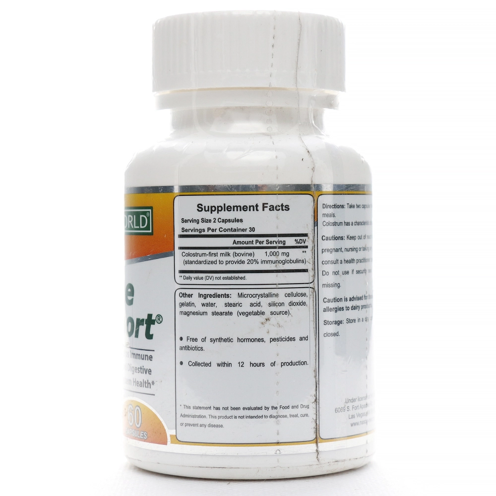 کپسول ایمیون ساپورت نچرال ورلد، یک مکمل تغذیهای حاوی ۵۰۰ میلیگرم کلستروم شیر گاو در هر کپسول است که استاندارد آن بر اساس ۲۰٪ ایمونوگلوبولینها تنظیم شده است. این محصول با هدف تقویت سیستم ایمنی بدن، بهبود سلامت دستگاه گوارش، حمایت از رشد و ترمیم بافتها و مقابله با عفونتهای تنفسی طراحی شده است.