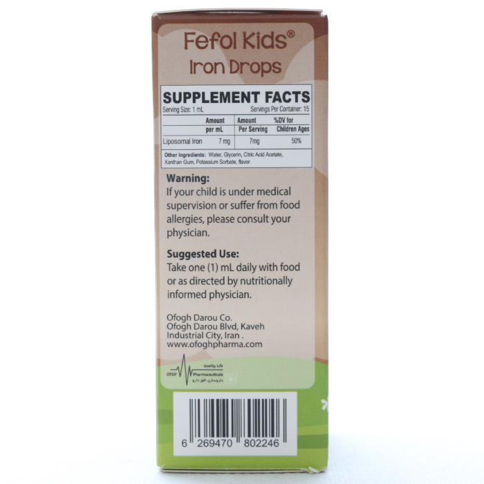 ففول کیدز با فرمولاسیون لیپوزومال به طور مؤثر سطح هموگلوبین خون را افزایش داده و به درمان کم خونی ناشی از فقر آهن در کودکان کمک میکند. مصرف منظم این قطره، نقش مهمی در پیشگیری و کنترل کمخونی و بهبود وضعیت عمومی بدن ایفا میکند.