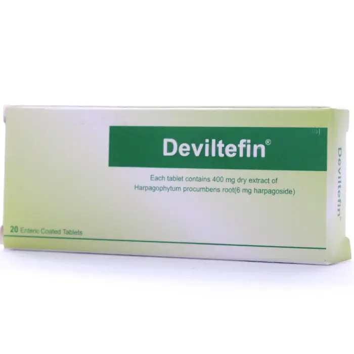 قرص دویلتفین، یک فرآوردهی کاملاً گیاهی حاوی عصاره خشک ریشه گیاه پنجه شیطان است که دارای اثرات ضد درد، ضد التهاب و محافظتکننده از غضروف مفاصل میباشد. قرص دویلتفین ۴۰۰ میلیگرم آیریانیک به طور ویژه برای تسکین دردهای مفصلی، آرتروز، التهاب مفاصل و نقرس استفاده میشود.