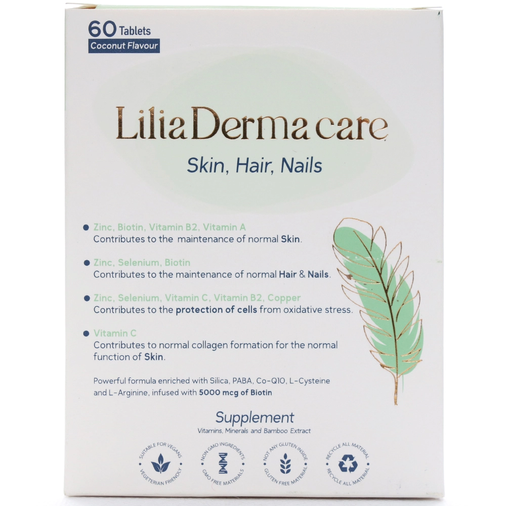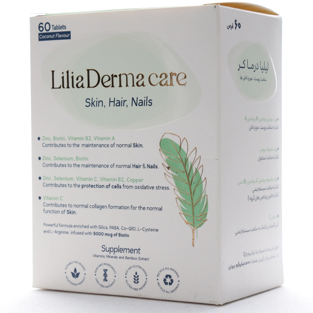 قرص لیلیا درماکر، یک مکمل تغذیه ای است که برای حفظ و بهبود سلامت پوست، مو و ناخن طراحی شده و حاوی ویتامینها، مواد معدنی و ترکیبات مفید جهت تقویت زیبایی طبیعی بدن است.